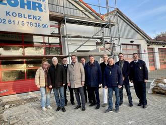 Die Verbandsgemeinde (VG) Weißenthurm investiert in die Zukunft ihrer Feuerwehr: Die Erweiterungsarbeiten an der bestehenden Fahrzeughalle der Einheit Bassenheim sind fast abgeschlossen. Künftig wird es in dem eingeschossigen Neubau, der direkt an die bereits bestehende Halle anschließt, Platz für zwei zusätzliche Einsatzfahrzeuge geben. VG-Bürgermeister Thomas Przybylla, Wehrleiter Arnd Lenarz mit seinem Stellvertreter Marco Ihrlich und der Bassenheimer Wehrführer Michael Röser informierten sich gemeinsam mit Mitgliedern des Ältestenrates vor Ort vom Baufortschritt.