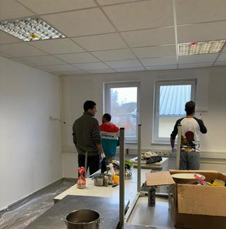 Alle Küchenschränke wurden ausgeräumt und sorgfältig gereinigt, auf beiden Stockwerken war eifriges Schrubben und Wienern angesagt. Als überall Ordnung und Sauberkeit herrschte, kam Farbe an die Wände. „Die Beteiligten waren voller Elan dabei und hatten beim Pinseln und Rollen jede Menge Spaß“, schildert Linden. Nach getaner Arbeit gab es für die Helferinnen und Helfer eine leckere Stärkung.