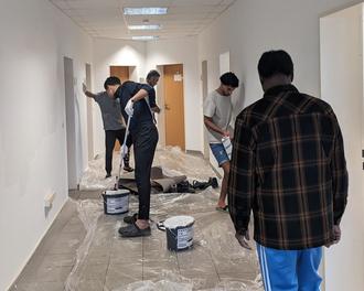 Gänge und Gemeinschaftsräume der Sammelunterkunft für geflüchtete Menschen strahlen in neuem Glanz.