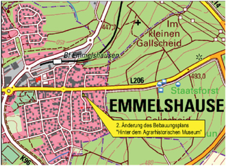Der Geltungsbereich der 2. Änderung des Bebauungsplans „Hinter dem Agrarhistorischen Museum“ umfasst in der Gemarkung Emmelshausen folgende Flurstücke: