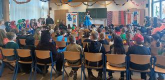 Die Klasse 3a folgte sodann mit einer klassischen, gut vorgetragenen Büttenrede in Reimform, die den Unterricht in der Klasse widerspiegelte.