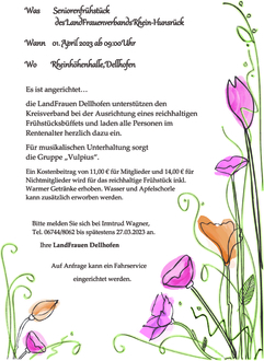Bitte melden Sie sich bei Irmtrud Wagner, Tel. 06744/8062 bis spätestens 27.03.2023 an.