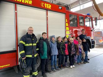 Heute hat die Klasse 4a einen spannenden Ausflug zur Feuerwehr in unserem Ort gemacht. Wir sind gemeinsam von der Schule aus hingelaufen und waren schon ganz aufgeregt.