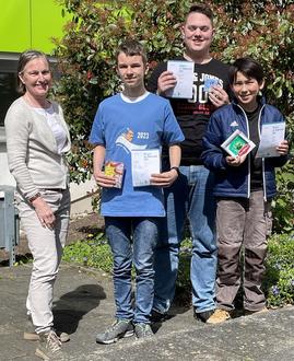 Von links nach rechts: Kornelia Neumann (Schulleiterin), Leo Schmengler, Julian Göbel und Aaron Hoff
