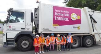 Riesige Müllberge und unterschiedliche Mülltrennungscontainer wurden besichtigt. Auch durfte jedes Kind einmal im Müllauto Platz nehmen.