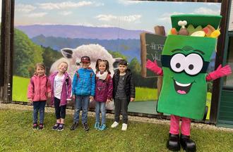 Das Highlight der Kinder war es dann, in einem LKW zu sitzen und auf dem Tritt des LKWs zu stehen. Zum Schluss bekamen die Kinder einen Einblick in die natürliche Müllverarbeitung durch Insekten und Käfer und durften diese auch auf die Hand nehmen.