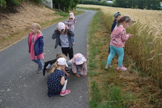 Im Juni blüht alles auf den Wiesen und Feldern und es sind viele Insekten unterwegs. Auch die Kinder und Erzieherinnen aus der Sternengruppe machen oft Spaziergänge und erkunden die Umgebung der Kita. Natürlich haben die Kinder da auch immer wieder Käfer und andere Krabbeltiere entdeckt und viele Fragen gestellt. Daraus ist dann ein „Krabbeltier-Projekt“ entstanden. Es wurden verschiedene Insekten beobachtet, kurze Videos über Bienen, Schmetterlinge und Marienkäfer angesehen und viele Sachbilderbücher angeschaut.