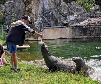 Die dritten Klassen hingegen durften Tiere in ihrem Lebensraum erkunden: Sie kamen den Seehunden ganz nah und durften sogar mit in deren Gehege gehen. Dort durften sie die Seehunde selbst füttern.