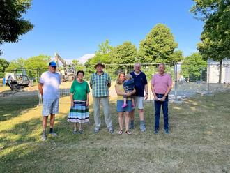 Mitglieder der CDU-Fraktion Emmelshausen bei der Besichtigung der Baustelle „Spielplatzerweiterung“ im Park (v.l.n.r. Hans Magdziak, Ute Klinkner-Ludwiczak, Günter Petry, Christina Muders, Alfred Muders, Gerd Hammes)