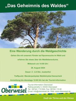 im Anhang das Plakat für die Wanderung mit dem Förster "Geheimnis des Waldes" mit der Bitte um Veröffentlichung in den Mittelrhein-Nachrichten.