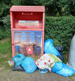 Erschwerend kommt hinzu, dass diese Art der Altkleidersammlung offenbar in einer Umbruchphase steckt. Die Leerungen werden daher in der nächsten Zeit vermutlich nicht regelmäßig erfolgen. Ich bitte die Entsorgenden daher, ihre abgelegten Säcke wieder abzuholen und appelliere nochmals an den anständigen Umgang mit unseren Sammelplätzen.