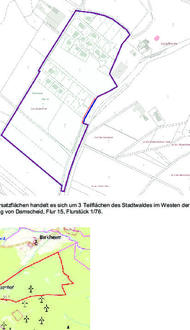 Bei den Ersatzflächen handelt es sich um 3 Teilflächen des Stadtwaldes im Westen der Gemarkung von Damscheid, Flur 15, Flurstück 1/76.