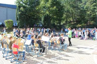 Schon beim Betreten des Schulhofs wurden die neuen Fünftklässler musikalisch mit einem Willkommenslied empfangen.