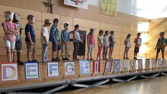 Die Schülerinnen und Schüler der 2. Klasse hatten einige Programmbeiträge vorbereitet, in denen sie ein wenig davon erzählten, was die neuen Erstklässler an der Schule erwartet. Die Klasse 2a präsentierte sich als Mäusegruppe, die zu jedem der 26 Buchstaben ein passendes Wort gefunden hatten, um das Leben an der Schule zu beschreiben. Die Kinder der Klasse 2b hingegen hatten einige schöne Bilder gemalt und präsentierten nacheinander die einzelnen Unterrichtsfächer, die an unserer Schule unterrichtet werden.