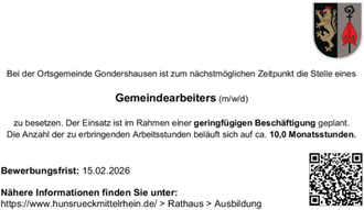 Bei der Ortsgemeinde Gondershausen ist zum nächstmöglichen Zeitpunkt die Stelle eines