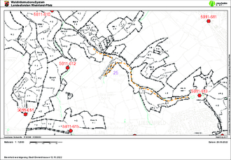Die Polter lagern entlang des Forstweges, welcher von den Molkereiteichen (RP: 5811-613) entlang des Liesenfelder Bachs hin zum asphaltierten Weg, welcher in Richtung der Baunhöller Mühle verläuft (RP:5811-612), führt.