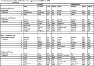 In der Sitzung des Stadtrates wurde am 09.09.2024 folgende Mitglieder in die Ausschüsse der Stadt Emmelshausen gewählt:
