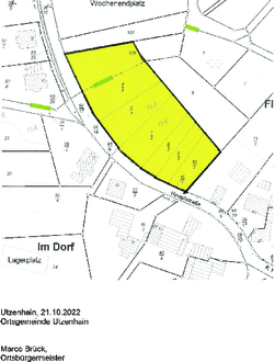 Der Ortsgemeinderat Utzenhain beschließt, das Verfahren zur Aufstellung des Bebauungsplans „Die Zarstwies“ einzuleiten. Der vorgesehene Geltungsbereich umfasst die Flächen in der Gemarkung Utzenhain, Flur 10, Flurstücke 4/3, 6/1, 7/2, 8/2, 9/2, 10/2 und in Flur 15 das Flurstück 159 tlw..