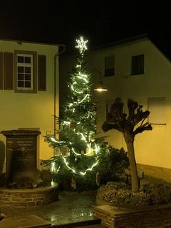 Ein Team der Rentnerband hat auch in diesem Jahr eine wunderschöne Fichte ausgewählt und mit Unterstützung unseres Gemeindearbeiters am Backes aufgestellt. Die Kinder unserer Kita Rheinkiesel bastelten den schönen Baumschmuck. Und so erstrahlt seit letzter Woche wieder ein stattlicher Weihnachtsbaum in unserer Dorfmitte und erfreut uns mit seinem Glanz in diesen dunklen Tagen. Ein herzliches Dankeschön an alle Beteiligten.