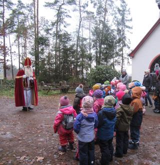 Am 06.12.2023 bekamen die Kinder der katholischen Kindertagesstätte Vom guten Hirten Besuch vom Nikolaus. Die kleineren Kinder besuchte er in der Kita. Die größeren Kinder besuchte er in der Schönstätter Waldkapelle. Gut gelaunt und singend gingen die Kinder mit ihren Erzieherinnen zum Kapellchen. Dort angekommen wurde gefrühstückt und auf den Nikolaus gewartet.