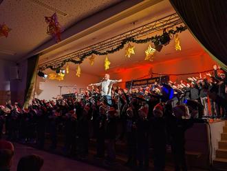 Nach den ersten gemeinsamen Tönen schien die Aufregung und Nervosität wie weggeblasen. Die Mädchen und Jungen auf der Bühne sowie die Kinder, Eltern und Großeltern im Publikum ließen sich von Reinhard Horn mitreißen. Neben temperamentvollen Stücken wie "Applaus für den Nikolaus" oder "Der Schneemann-Rock´n Roll", fanden auch ruhigere und besinnlichere Lieder wie "Winterzeit, Weihnachtszeit" oder "Lichterkinder" großen Anklang.