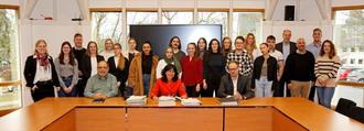 Die Vorsitzende des Kreisrechtsausschusses Andrea Deges-Becker (vordere Reihe Mitte), mit den Beisitzern Peter Kuhn (links) und Matthäus Kielkowski, Dr. Jacqueline Frinken als weitere Vorsitzende des Kreisrechtsausschusses (hintere Reihe links), Landrat Volker Boch (hintere Reihe 4. v. r.) und den Studierenden des Praxisprojekts