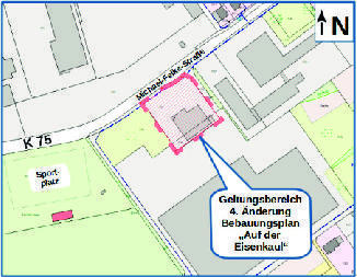 Das Verfahren erhält die Bezeichnung „Bebauungsplan ‚Auf der Eisenkaul‘, 4. Änderung“. Diese Bekanntmachung erfolgt gemäß § 1 Absatz 8 BauGB in Verbindung mit § 2 Absatz 1 Satz 2 BauGB.