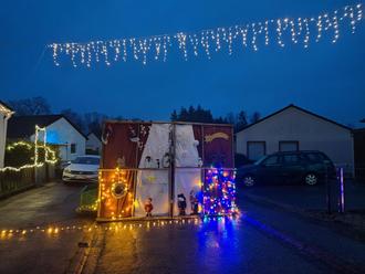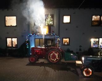 Lustig war auch die Sternenfahrt zweier begeisterter Oldtimer-Traktorbesitzer. Sie machten sich mit ihren bunt beleuchteten Oldies auf zu Fensterchen Nr. 13.