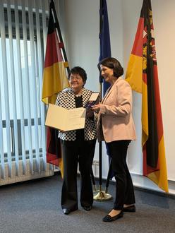 Frau Hildegard Kaefer aus Sohren wurde mit dem Verdienstkreuz am Bande des Verdienstorden der Bundesrepublik Deutschland ausgezeichnet. Die feierliche Ehrung wurde von der Ministerin für Wirtschaft, Verkehr, Landwirtschaft und Weinbau des Landes Rheinland-Pfalz, Daniela Schmitt, vorgenommen.