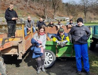 Bei sonnigem Frühlingswetter trafen sich am 18. März wieder viele Freiwillige und umweltbewusste Helferinnen und Helfer um an den Bachrändern, in der Gemarkung und an den Straßenrändern den Müll und Unrat aufzusammeln. Es hat uns sehr gefreut, dass viele Kinder, Jugendliche und Erwachsene im Alter von 10 - 70 Jahren bei der Aktion tatkräftig geholfen haben. Durch die große Beteiligung war der von der Rhein-Hunsrück- Entsorgung kostenfrei zur Verfügung gestellte Container nach drei Stunden fast halb gefüllt.