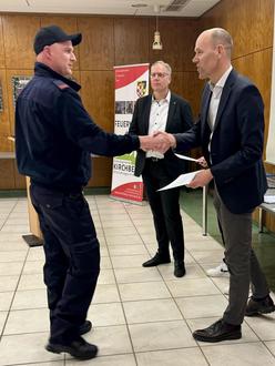 Nach dem offiziellen Teil lud der Verwaltungschef die Feuerwehrleute noch zu einem kleinen Umtrunk mit Imbiss ein.