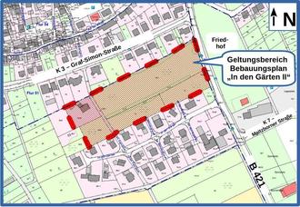 Das Verfahren erhält die Bezeichnung „Bebauungsplan ‚In den Gärten II‘“. Diese Bekanntmachung erfolgt gemäß § 2 Absatz 1 Satz 2 BauGB.