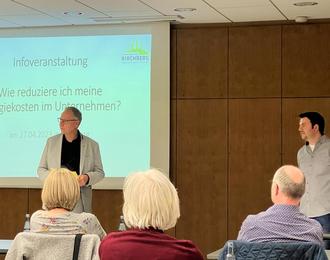 Bürgermeister Peter Müller begrüßte die anwesenden Unternehmer/-innen im Ratskeller der Verbandsgemeinde Kirchberg. Klimaschutzmanager Patrik Jung informierte zur Reduzierung der Energiekosten und gab Tips für die Beantragung von Fördermittel, da sich hier aufgrund der aktuellen Diskussion um die Heizmedien vieles im Umbruch befindet. Im Anschluss an die Veranstaltung fand noch ein persönlicher Austausch mit den Unternehmer-/innen statt.