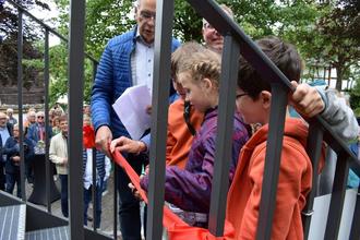 Am Sonntag, den 16. Juni 2024 wurde die neue Treppenanlage zur Burg Dill, welche aufgrund von Sicherheitsbaumaßnahmen erforderlich war, erfolgreich eröffnet. Bürgermeister Peter Müller und Ortsbürgermeister Gundolf Kurz begrüßten die Gäste mit einer Eröffnungsrede bei einem gemütlichen Sektempfang. Nach der feierlichen Durchtrennung des roten Bandes wurde der neue Treppenaufgang, welcher durch zahlreiche Infotafeln gleichzeitig als historischer Zeitstrahl fungiert, eingeweiht. Auf der Oberburg sorgte anschließend der Freundeskreis Burg Dill e. V. mit leckeren Köstlichkeiten für das leibliche Wohl.