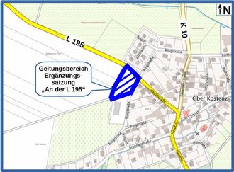 Der Geltungsbereich der Ergänzungssatzung „An der L 195“ umfasst das Grundstück Gemarkung Ober Kostenz Flur 15 Flurstück 21; weitere Flächen sind nicht betroffen.