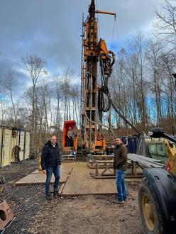 Bürgermeister Peter Müller und Stellvertretender Werkleiter Rainer Kuhn besichtigten die erste Bohrstelle der neuen Brunnen Gemünden.