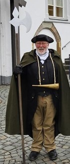Der Leiter des Heimathauses, Winfried Wagner, wird gekleidet als Nachtwächter in einem barocken Kostüm seine Gäste durch das nächtliche Kirchberg führen.