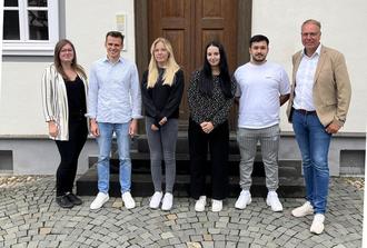 Am 01.08.2023 wurden die neuen Auszubildenden zur/zum Verwaltungsfachangestellte/n Letizia Heid, Aimee Küpper und Gökhan Balci, sowie unser diesjähriger FOS-Jahrespraktikant Joshua Cieplick, von Bürgermeister Peter Müller und den Ausbildern Viktor Faber und Cynthia Fischer herzlich begrüßt.
