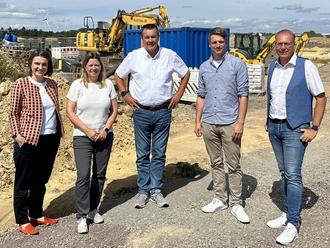 Frau Ziegle und Herr Vallerius vom Ministerium für Wirtschaft, Verkehr, Landwirtschaft und Weinbau, Mainz, sowie Frau Hillesheim vom Bundesministerium für Wirtschaft und Klimaschutz tauschten sich mit Bürgermeister Peter Müller und Stadtbürgermeister Werner Wöllstein über die Herausforderungen eines solchen Projektes aus. Anschließend fand noch eine Besichtigung des Industriegebietes II in Kirchberg, des zukünftigen Gewerbegebietes Sohren-Büchenbeuren sowie der freien Flächen auf dem Gebiet des Flughafen Hahns statt.