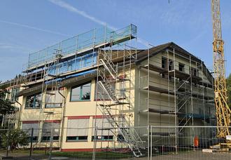 In der Grundschule Büchenbeuren wird derzeit das Dachgeschoss umfassend ausgebaut. Im Zuge der Baumaßnahme entstehen zwei neue Klassenräume, zwei Differenzierungsräume sowie moderne Sanitäranlagen.