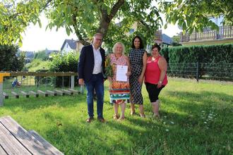 Bürgermeister und Vorsitzender des Kita-Zweckverbandes Peter Müller, sowie die Kita-Leitung Irina Dinges und Simone Schreiner vom Personalrat gratulierten Frau Kunz herzlich und wünschten ihr für die Zukunft alles Gute.