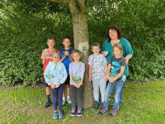 Zusammen mit der Kunstpädagogin Claudia Westermayer haben die Kinder Bilder mit Naturmaterialien gestaltet, witzig bis herzliche Spuren aus Ton an den Bäumen hinterlassen. Ein facettenreicher Ferientag bleibt in Erinnerung.