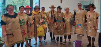 Das Team hatte sich auch nicht nehmen lassen, selbst etwas vorzuführen und so kam eine wunderschöne Modenschau mit selbst kreierten Säcken zustande, es gab einen Schokoladensack, einen Freudensack, einen Postsack, einen Pennersack, einen Geldsack, einen Fresssack, einen Sack de Mief, einen Putzsack und einen Schlafsack und die Moderatorin trug einen Sack mit selbstgenähter, schicken, dicken Unterhose um ihre zartes Popöchen warm zu halten. Die Modenschau kam bei allen gut an und bereitete viel Vergnügen.
