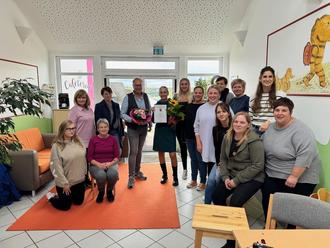 Bürgermeister und Verbandsvorsteher Peter Müller, die Personalratsvorsitzende Simone Schreiner und das gesamte Team gratulierten Frau Bonn ganz herzlich zu Ihrem Jubiläum und wünschten ihr weiterhin alles Gute.