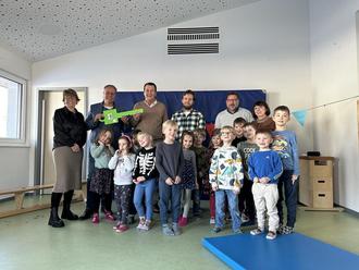 Mit einer symbolischen Schlüsselübergabe am vergangenen Freitag, dem 19. Januar, wechselte die Trägerschaft der Kita Gänsacker von der Stadt Kirchberg auf den neuen Kita-Zweckverband der Verbandsgemeinde Kirchberg. Stadtbürgermeister Werner Wöllstein überreichte den Schlüssel in einer kleinen Feierstunde an den neuen Verbandsvorsteher Bürgermeister Peter Müller. Die Kinder boten den Anwesenden mit Gesang und Tanz einen feierlichen Rahmen.