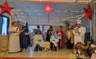 Dann kam der Höhepunkt des Nachmittags. Das Krippenspiel: „Die Botschaft der Engel“ von Dorina Dusny-Schmidt, Zu jeder Szene in dem Spiel sangen alle jeweils eine Strophe eines dazu passenden Liedes. In das Krippenspiel ist das ganze Team eingebunden, da so viele Rollen besetzt werden müssen und für den Josef haben wir dann noch Manfred verpflichtet. Die Besucher fanden das Krippenspiel sehr schön und sparten nicht mit Applaus. Anschließend bekam das ganze Team von allen Besuchern noch einen Geldbetrag überreicht, mit dem uns für die ganze geleistet Arbeit während des Jahres Gedankt wurde, das werden wir benutzen um mal schick Essen zu gehen. Leider haben Irene, Margret, Ursula und Rita nach langen Jahren in unserem Team ihre Mitarbeit beendet was wir sehr bedauern, aber irgendwann muss ja mal Schluss sein, wir hoffen aber dass wir bald noch welche finden die bei uns mitmachen wollen, Erika haben wir ja schon dabei. Nun kam auch das Christkind und überreichte Jedem Gast ein kleines Geschenk. Nachdem wir dann noch Stille Nacht gesungen hatten war der Nachmittag auch schon wieder zu Ende. Der nächste Seniorenkaffee ist am 13. Januar 2026. Ein ganz großes Dankeschön auch an Manfred und Jens, welche beim Auf und Abbau tatkräftig mitgeholfen haben. Danke auch an die Firma Blümling für den Tannenbaum.