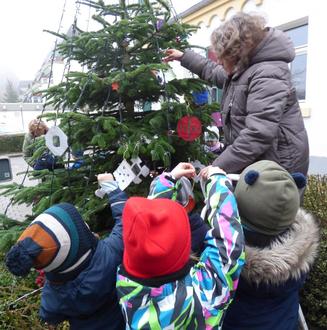 Die Kinder der Kita Arche Noah durften dieses Jahr den Weihnachtsbaum vorm Rathaus unserer Bürgermeisterin Frau Jourdant in Rheinböllen schmücken.
