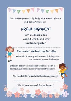 In diesem Rahmen laden wir herzlich zu unserem bevorstehenden Frühlingsfest ein! Gemeinsam basteln wir fleißig und üben für unseren Tücher-Tanz, den die Kinder aufführen werden.