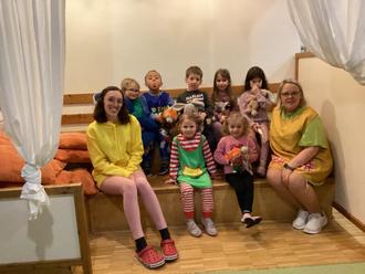 Passend zum Thema verwandelte sich unser Bauraum in eine gemütliche Villa Kunterbunt. Die Kinder durften verkleidet oder im Schlafanzug und mit Kuscheltier im Gepäck, in die Kita kommen. Zur Stärkung gab es Pizza und Wackelpudding.
