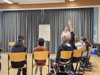 Den Anfang hat nun die Klasse 5a mit ihren Klassenlehrerinnen Veronika Demme und Nadine Sünder gemacht. Hierbei stellte Frau Rupp fest, dass in der Klasse besonders das Thema „Menschenrechte“ für die Fünftklässler sehr wichtig war. Hierzu zählten für die Schülerinnen und Schüler, niemanden seelisch („am Herzen“) oder auch körperlich zu verletzten und auch das Eigentum jedes Einzelnen zu respektieren.